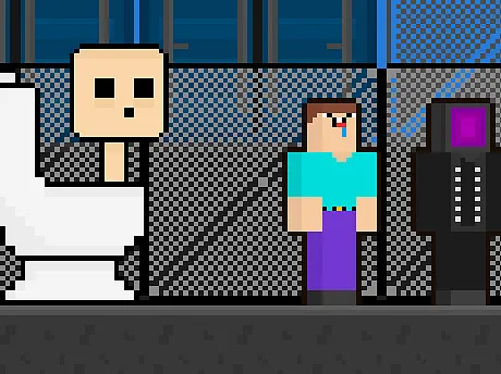 Two friends are running away from the monster. The toilet monster is chasing. Escape the toilet monster. toilet monster can kill you. collect all the gold. Collect the gold to open the portal. Jump over obstacles, go faster than some. run with your friend, dont stop. reach the portal. boiler.